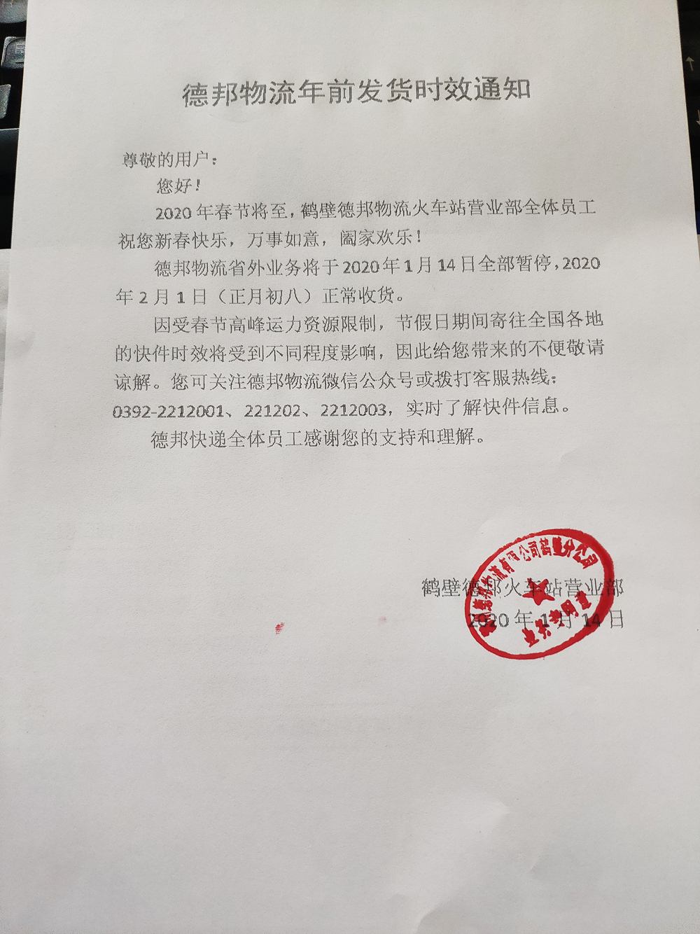 以上物流停止接貨當日及當日以后發(fā)出的貨物,我司不能保證正常的運輸?shù)截洉r效。